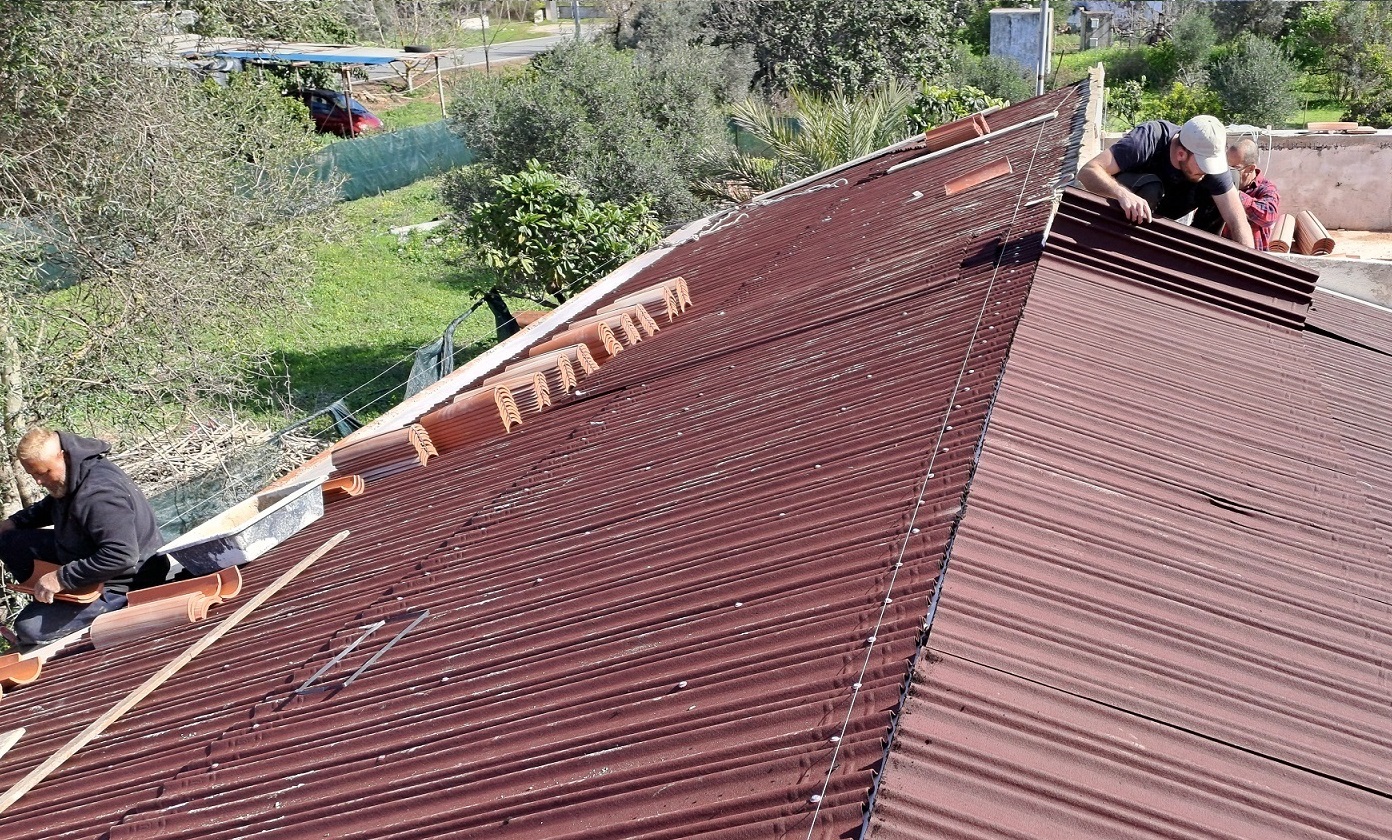 Fixação e encabeçamento das vigas com tela transpirante e execução de canalete